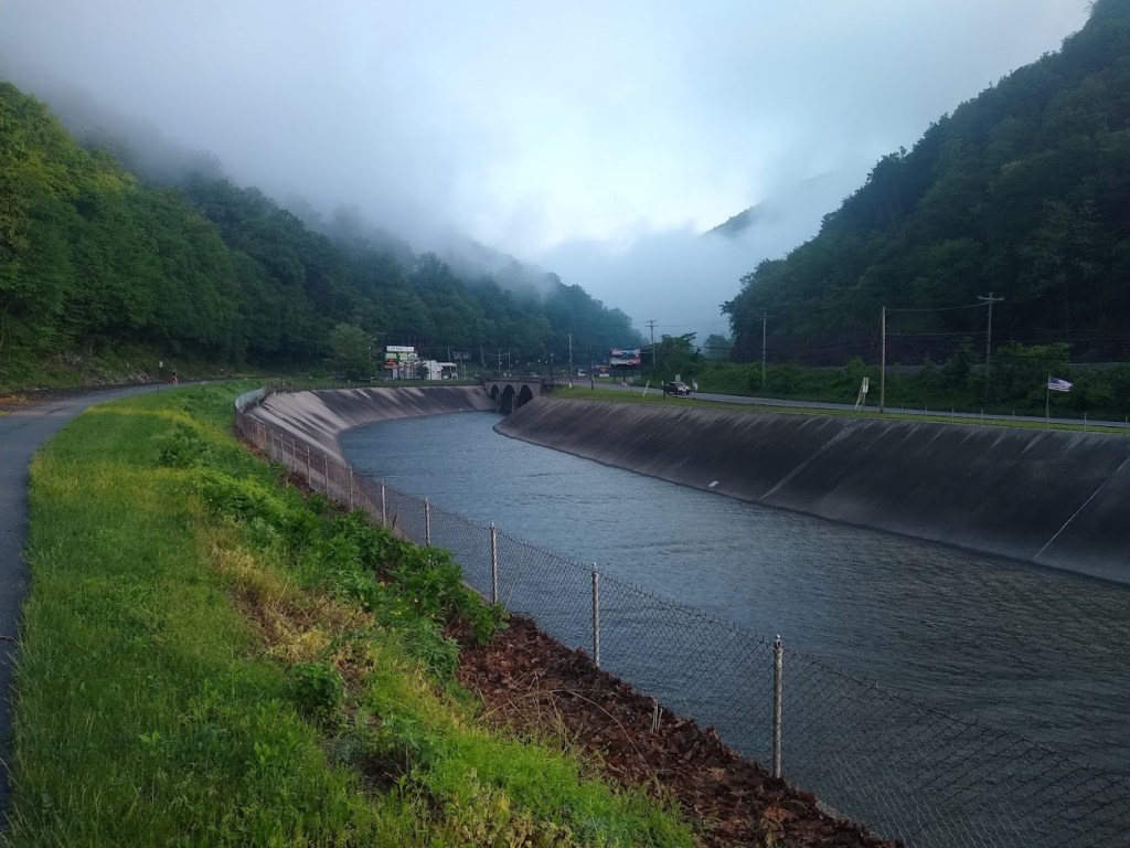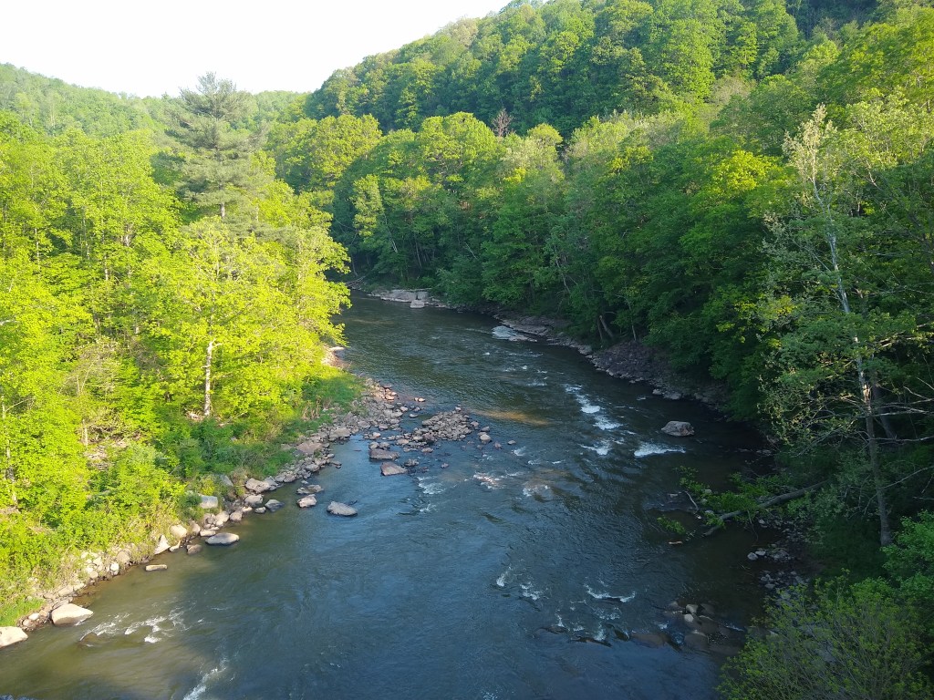 The view of the crystal-clear Youghiogheny from the bridge is unobstructed, making for a gorgeous sunset. The town is small enough that the noise of traffic isn’t any bother, and the people have, both times, been very welcoming and friendly. There are far more intersections here than you will have encountered thus far – but traffic is generally aware and will let you cross safely, yielding the right of way without a battle.