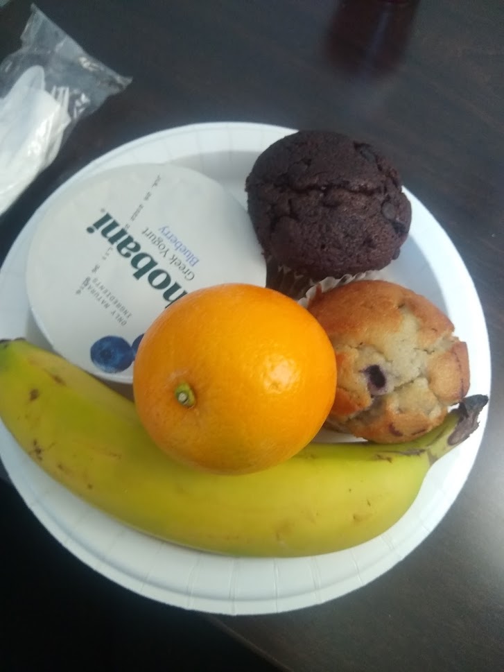 This place? A mini fridge full of yogurt and hard-boiled eggs. A window with a human being making scrambled eggs and sausage, the proverbial “juice” machine, muffins (chocolate and blueberry), 3-5 types of artesian breads, bagels, coffee, cereal, blood oranges, bananas, apples, cereal, coffee, ect. I have never seen that variety at a Comfort Inn (Given, I rarely rent hotel rooms). What I was less impressed with was the woman on the elevator who didn’t think I needed two muffins for breakfast. Don’t prejudge my breakfast rude elevator lady, my caloric needs are far greater than yours will likely be today!
