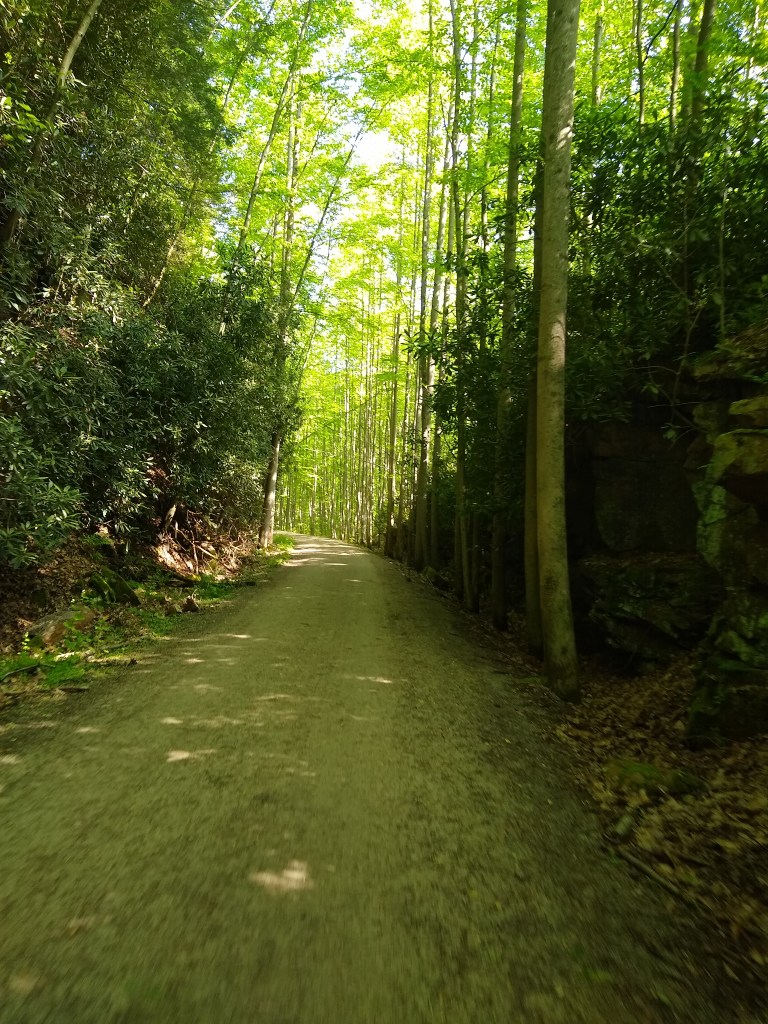 The town itself is between mile 71 and 72 so the park itself is rather large. It is, nevertheless, an absolute gorgeous 8-9 miles of forest. We rode under a green, shady canopy for about an hour as we took our time to stop and enjoy the forest around us, as well as some of the sights and historical signage.