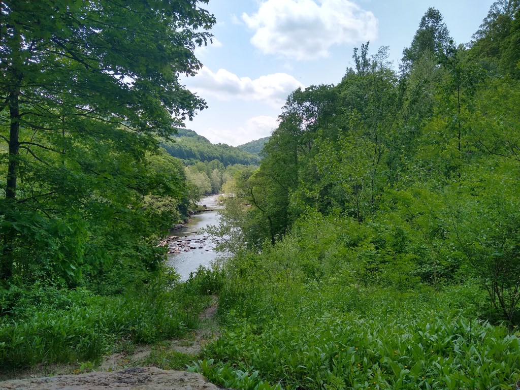 The Youghiogheny River Gorge is a few miles outside of Ohiopyle. I forced my mother down the trail one time to this spot (oops, I think she liked it though), and while it was a little overgrown this year it still is a great view of the river.