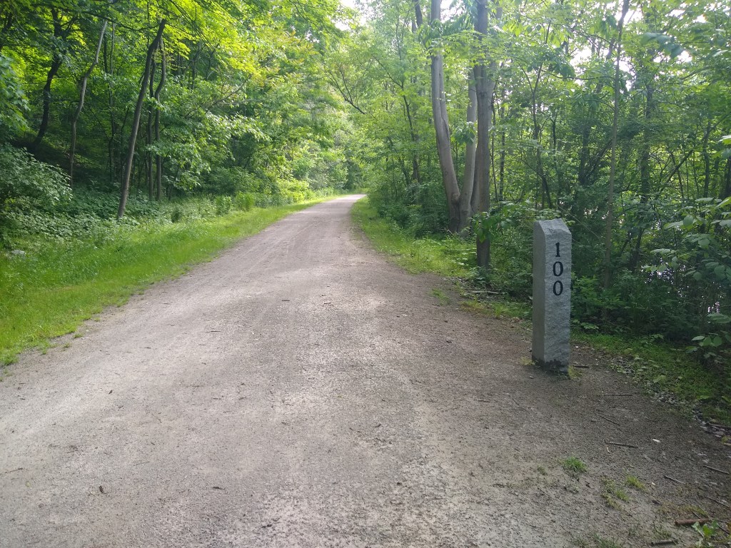 Riding past Dead Man’s Hollow Preserve (mile 128), this is the last glimpse of nature you’ll get (at least to this degree). This is seemingly a very large preserve (when I looked it up it said 400 acres – with an interesting backstory about the name). From here you have two things: paved trail and some (short) hills you had happily forgotten existed on this trail.