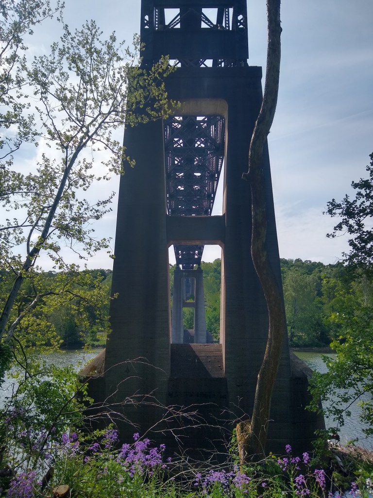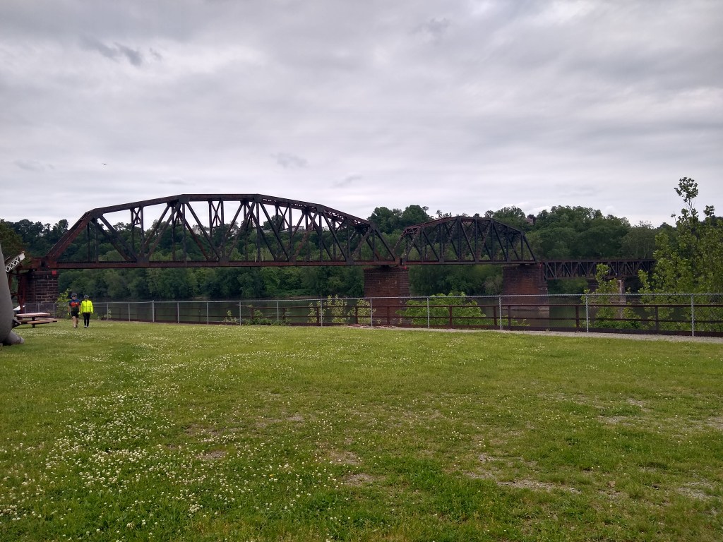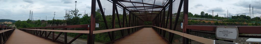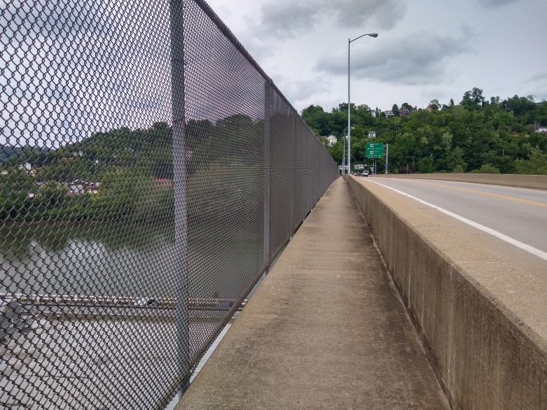 You’ll take a right, and eventually pass behind the police station in an alleyway. As you continue the trail is contained, on either side, by 8 foot chain link fencing. You’ll pass a few dilapidated buildings and then come to the Riverton Bridge out of McKeesport. It has a bit of a climb on one side if you’re heading north. It was here my Braxton-Hicks contractions returned with a vengeance. It’s not particularly hard, it’s just somewhat similar-to a HIIT workout. You’re really coasting and all of a sudden, you’re pushing pretty hard.