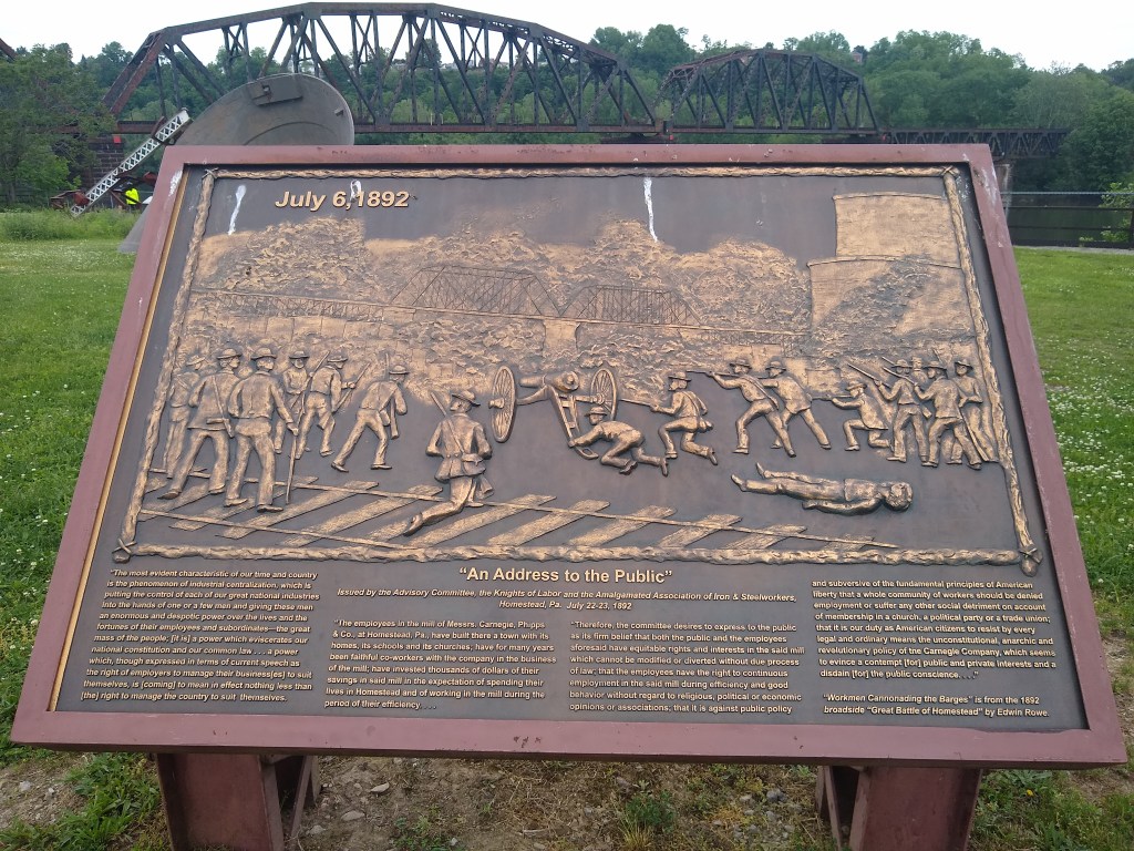 The steel mill pissed off the union workers who, from what I gather, had a bit too much “power” for the steel mill’s comfort. The mill brought in hired security (whatever that was called in 1892 – in this case they were called the “Pinkertons”). The hired security probably made it worse because union workers, now really pissed the hell off, came in with civil war weaponry (including a canon). It got out of hand, people died, and ultimately the government had to get involved to protect private property (and lives).