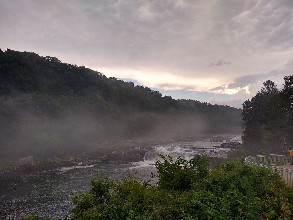 Moving along, like the aforementioned creepy asshole should have, Ohiopyle Falls was gorgeous as always. There’s a multilevel observation deck as well as a nice observation area in the Visitor Center. The fog was settling in before the rain and we experienced a unique and dynamic scene as we waited for the rain.