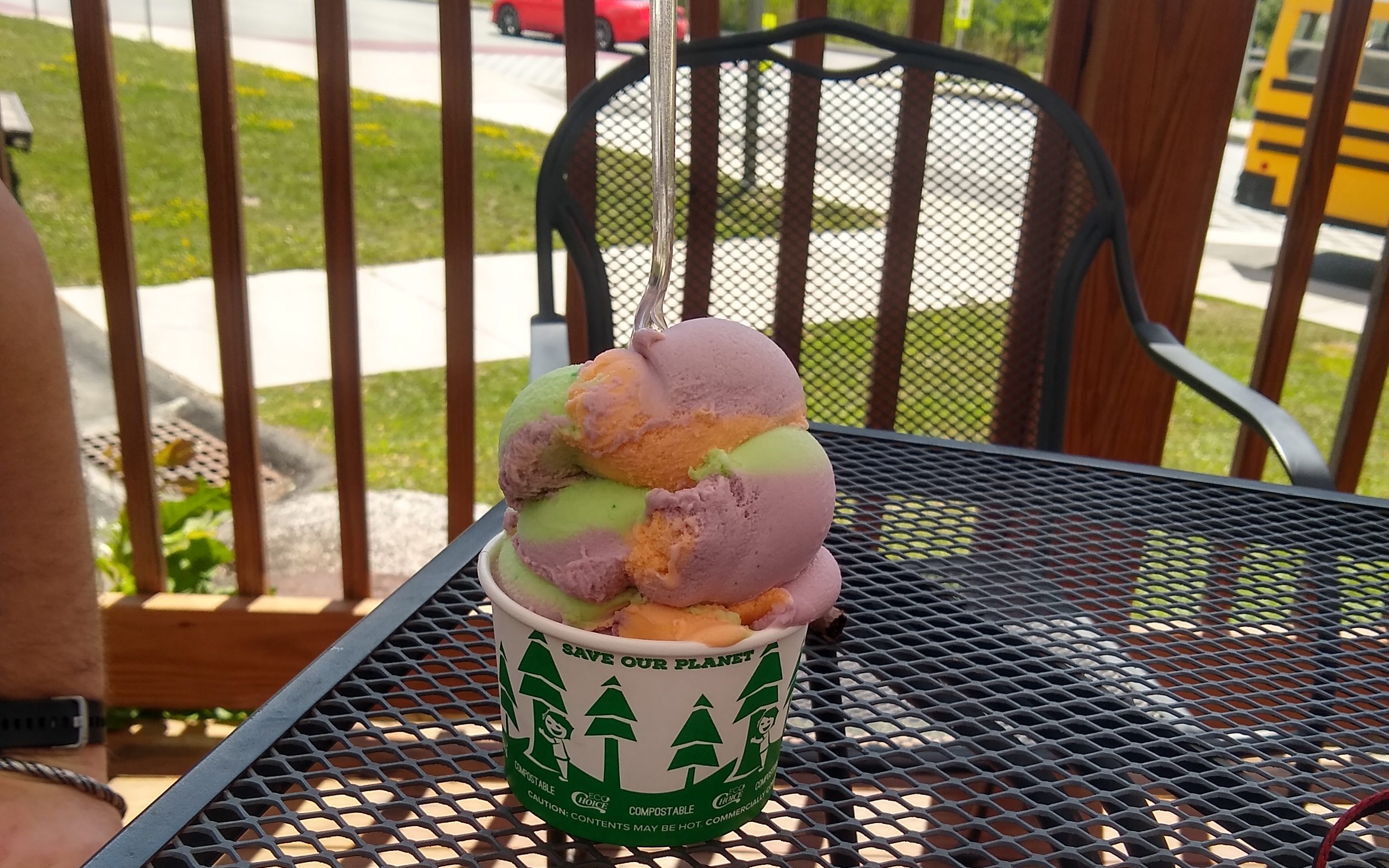 The Town of Ohiopyle is a nifty mixture of tourists and locals. The Falls Market has always been a good place for breakfast (served inside currently) and a lunch (ordered and served outside but can be brought it). And my favorite of course – anything dairy. The ice cream is dope, and the plethora of chocolate-covered snacks make a good sugar-coma-inducing pair.