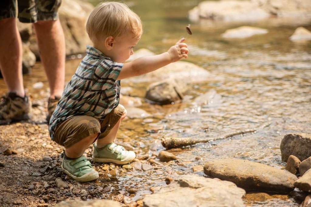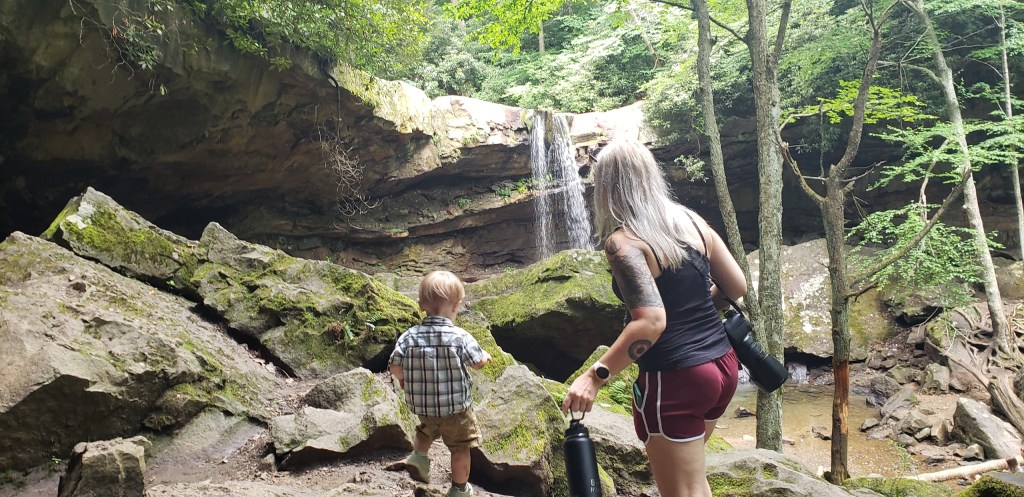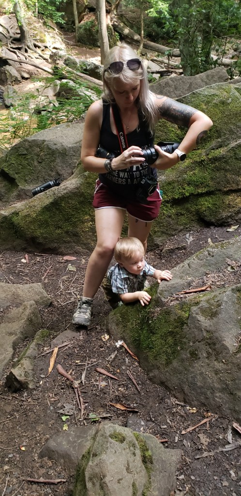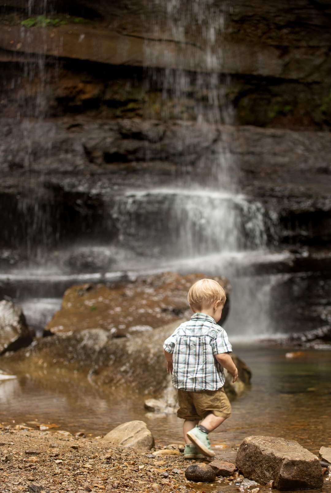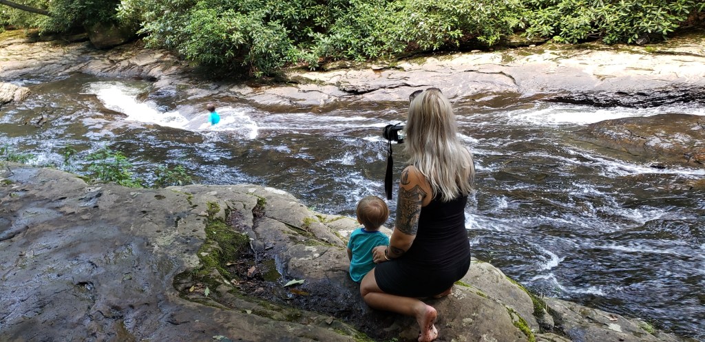 Approaching the falls, the pools at the bottom get about waist deep when the overall water level is low and probably about chest deep when the water is higher (on me….5’1”). Our youngest loves water, and aside from a general water safety for a 1 ½ year old, he was able to play safely in this area too, up to his comfort level (about knee deep at this point).