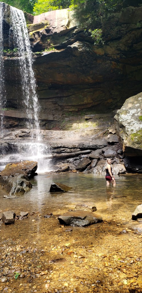 If you were to ask me about waterfalls in Appalachia that I’ve had the joy of experiencing, I could name off quite a few. And there’s a handful of those that I would call “captivating”. However, Cucumber Falls may take the cake. The setting, the height, the ability to stand under the falls itself and feel the crisp water at perfect temperatures fall on you is completely enchanting.