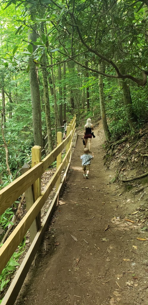 Long story short, this was indeed our trail. And Sugar Run Falls is almost immediately after that left turn onto Mitchell Field. But, due to Sugar Run being mostly empty that day, we walked right past it and went on a very very steep (but in my opinion, rewarding, I can’t speak for my family) trek upward.