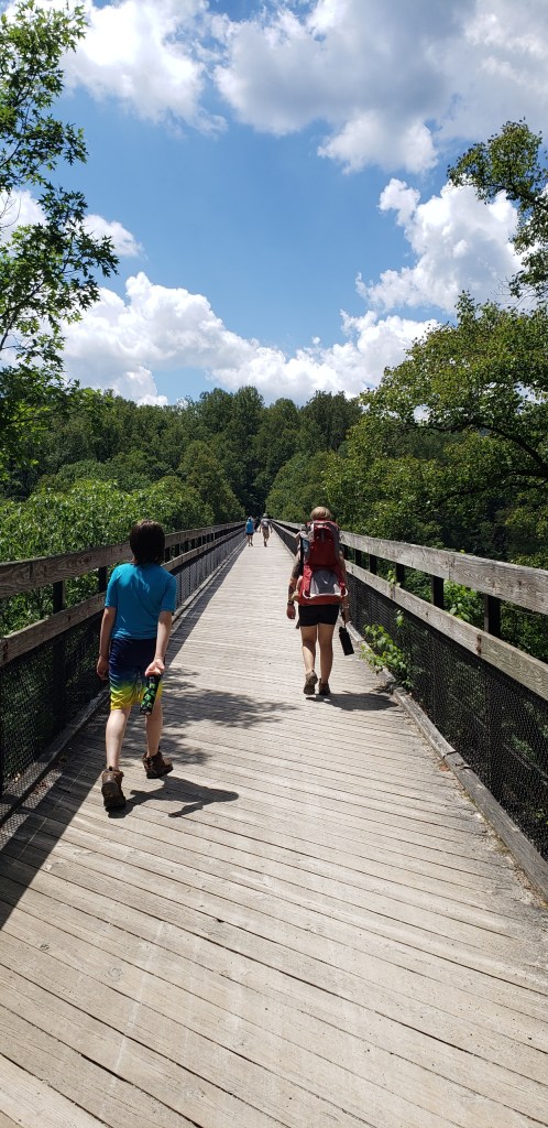 Instead of burning brakes, we decided to hike down from camp one day. The incline here isn’t for everyone, but I enjoyed it. There are two trails. Tom Faucet and an access trail (steeper, no switchbacks) designed for bikes. We took Tom Faucet per the map’s suggestion. It’s about a 10% grade (give or take) and almost exactly 1 mile to the Great Allegheny Passage which is mostly flat. Taking a left and heading into town, you’ll walk about a half mile, crossing over both High Bridge and Low Bridge (creative names, I know).