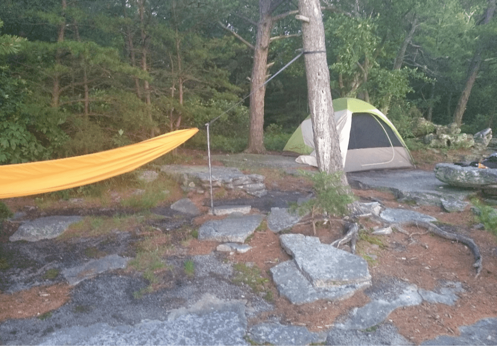 Camping here isn’t crowded and hammock camping is easy as the trees back right up against the rocks for a beautiful, serene view that photos do no justice.
