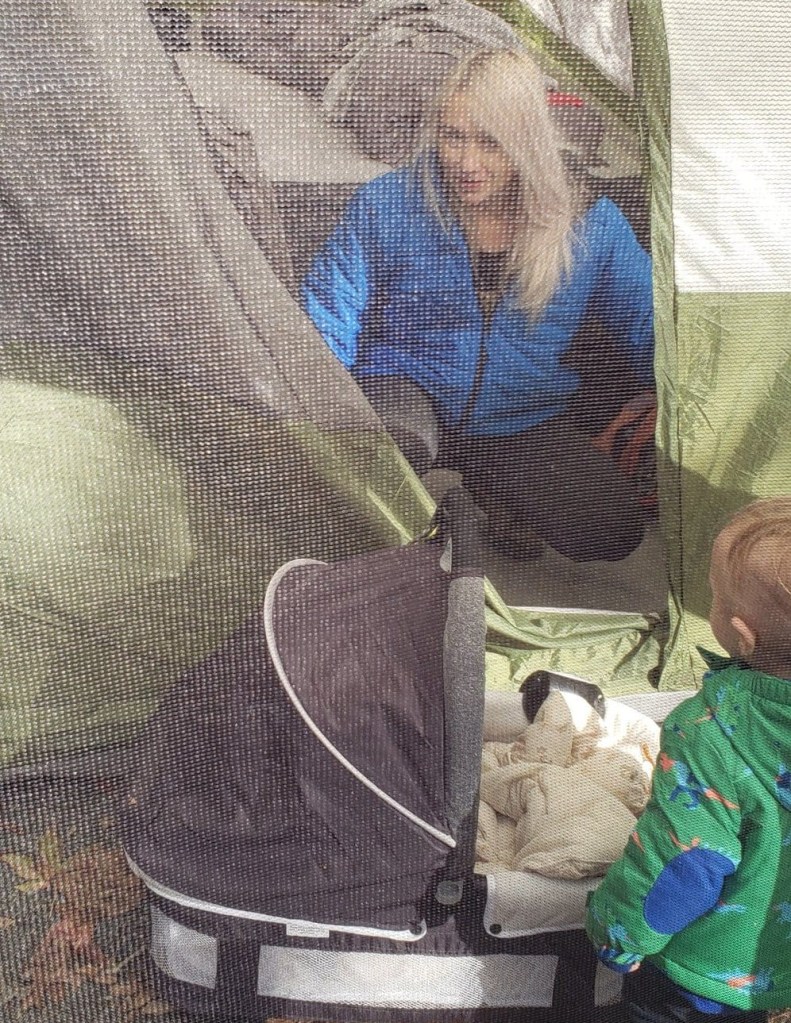 The best part, especially on a cold October morning, was the family (and handicapped-accessible) restroom. Why? Well because it was private, spacious, and just a little warmer in there. Changing two kids (the newborn and the toddler) in the cold on the air bed, on the ground, etc is something I’ve gotten used to and won’t complain about. However, having the extra elbow room to change them and be warm while doing so was fantastic. The shower was huge, clean, and quite frankly made me want to shower my kids as I don’t know that it would have been that easy at home.