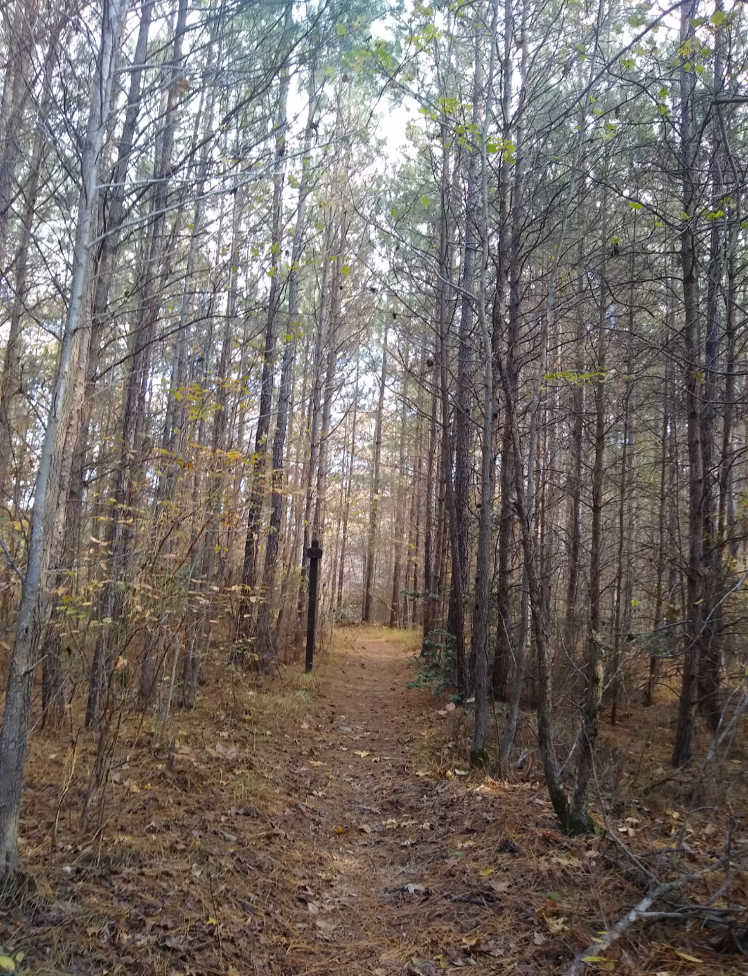 It is one of the few places in Southern Maryland that give me that communing-with-nature sense of awe. Since moving from Luray/Shenandoah I’ve had trouble bonding with this area and it’s been a huge spiritual struggle for me – but Cedarville is an exception. It comes effortlessly to me here. There are no mountain overlooks, and there’s no Shenandoah River, but there is the seemingly sacred undisturbed forest that seems to have a story to tell. And sometimes that story is “STFU and appreciate me”. So we do. One place in particular that we just call “the tree tunnel” is notably serene. Canopied with dense forest pine, the smell, and the ambiance are unmistakable.